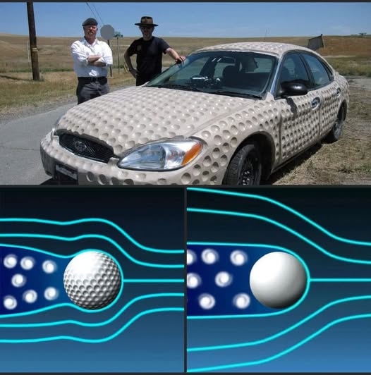 En 2012 los conductores del programa «Cazadores de Mitos» quisieron explorar si una superficie similar en un auto mejoraría su eficiencia. Cubrieron un vehículo con arcilla lisa y luego añadieron hoyuelos.
