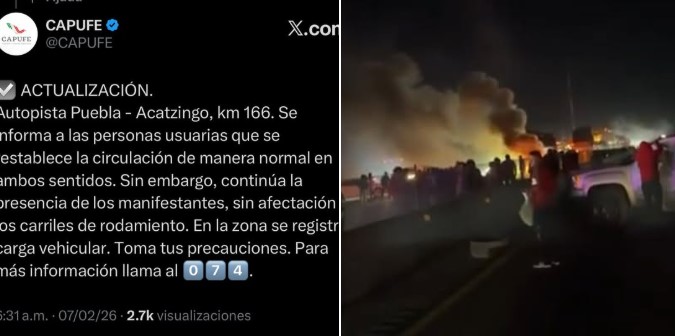 Puebla, Pue.— Tras ocho horas de bloqueo, fue restablecida la circulación vehicular en ambos sentidos en el kilómetro 166 de...
