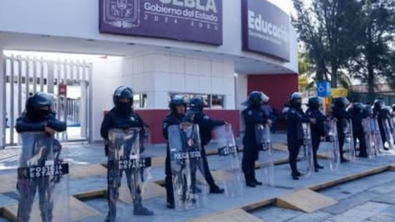 Puebla, Pue.- Un grupo de docentes se manifestó este jueves frente a las instalaciones de la Secretaría de Educación Pública...