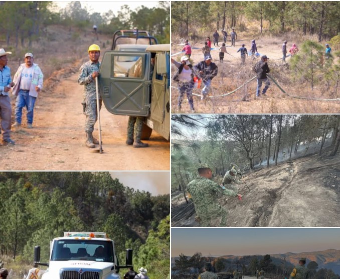 En las labores de contención y extinción del fuego participan elementos de la Secretaría de la Defensa Nacional (DEFENSA), Protección Civil del Estado, Policía y Guardia Forestal, Comisión Nacional Forestal (CONAFOR) y la Brigada Coyote 7. Además de contó con el apoyo de personal del vecino estado de Veracruz.