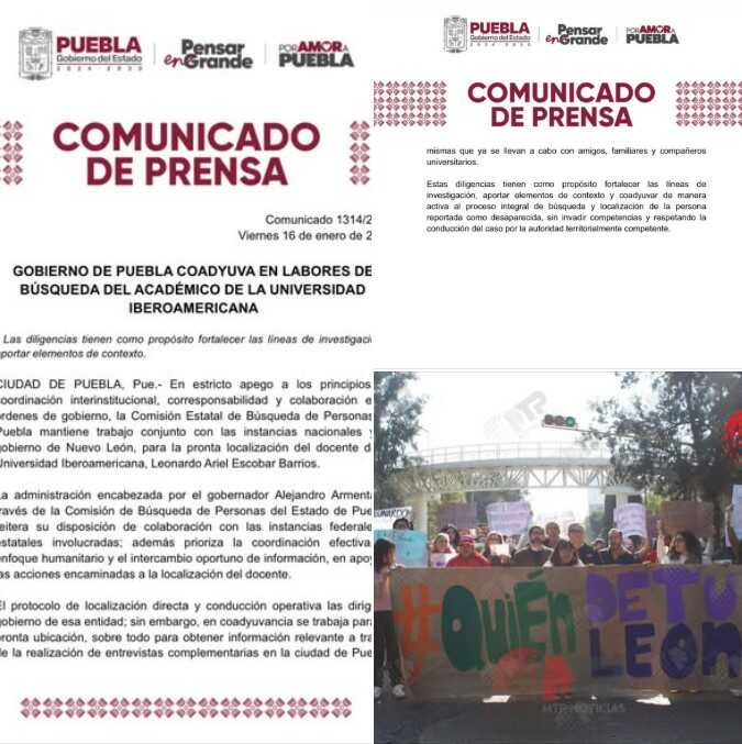 Solo después de la protesta, el Gobierno de Puebla confirmó que colabora con autoridades neoleonesas mediante entrevistas a personas cercanas al joven, una medida que, para estudiantes y familiares, refleja la falta de acciones oportunas y una coordinación deficiente entre entidades.