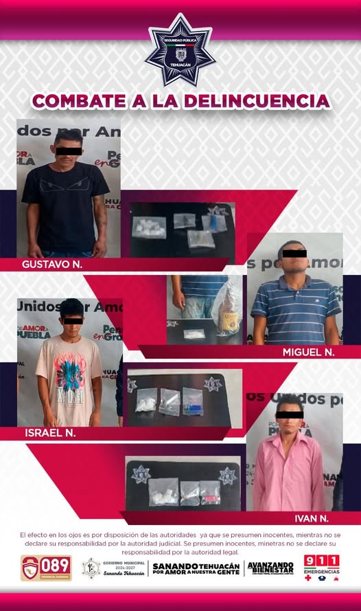 En una serie de operativ0s simultáneos, elementos de la Policía Municipal de Tehuacán lograron la det3nción de cuatro personas en distintos puntos del municipio, tras ser sorprendidas en posesión de presuntas sustancias ilícitas.