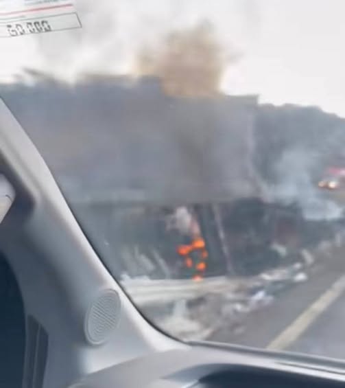 De acuerdo con los primeros reportes, tras perder el control, la unidad pesada terminó volcada sobre la carpeta asfáltica y, minutos después, fue consumida por las llamas, lo que incrementó el riesgo en la zona.